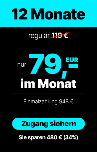 - 12 Monats Abo für 79€/Monat (bei Einmalzahlung in Höhe von 948€)